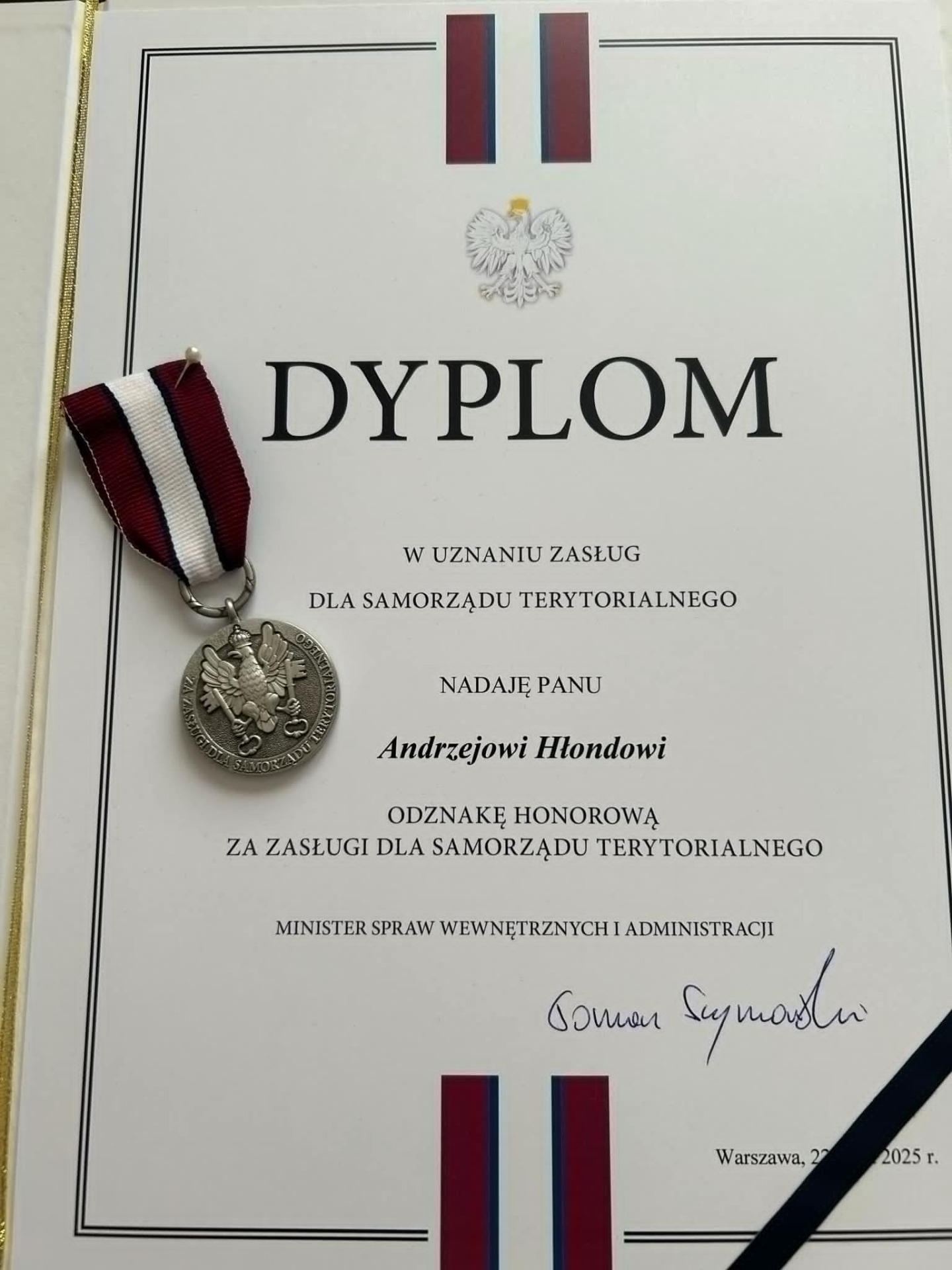 9 czerwca 2025 roku podczas uroczystej Rady Samorządu Terytorialnego działającej przy Wojewodzie Kujawsko – Pomorskim, Wicestarosta Andrzej Hłond został wyróżniony Honorową Odznaką Zasłużony dla Samorządu Terytorialnego.