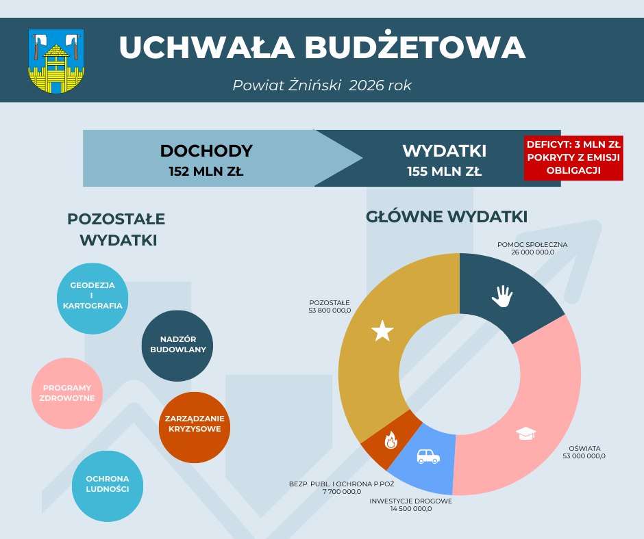 Rada Powiatu w Żninie jednogłośnie uchwaliła 22 grudnia 2025 roku budżet Powiatu Żnińskiego na 2026 rok. Przedłożony przez Zarząd projekt uchwały otrzymał poparcie 19 radnych.